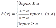 <question> Определите функцию распределения равномерно распределенной непрерывной случайной величины.