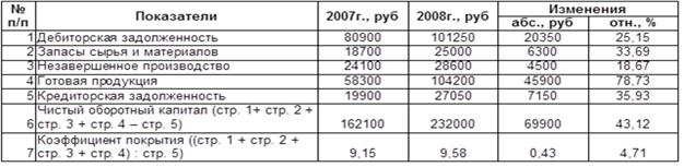 Объем реализованной продукции в 2008г. на 12,21% выше, чем в 2007г., а себестоимость реализованной продукции выше на 5,7%. Вложения в запасы и дебиторскую задолженность за вычетом кредиторской задолженности возросли с 99600 тыс. руб. до 126250 тыс. руб. или на 26,75%, что непропорционально росту объема продаж и свидетельствует о неудовлетворительном контроле периодов оборачиваемости оборотного капитала. Прирост чистого оборотного капитала на 69900 тыс. руб. означает, что чистые поступления от прибыли 2008г на 19500 тыс. руб. больше той величины, которую можно было бы получить при отсутствии прироста запасов и дебиторской задолженности (за вычетом кредиторской задолженности) в течение 2008г., поэтому компании, возможно, придется брать ненужную банковскую ссуду. Значительное увеличение чистого оборотного капитала означает, что в текущие активы вкладывается слишком много долгосрочных средств.