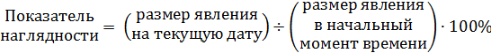 Показатель наглядности характеризует динамику явления в процентах относительно исходного уровня. Он представляет собой отношение каждого уровня ряда к одному из них (чаще начальному), принятому за 100%.