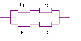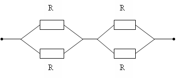 656. Четыре одинаковых сопротивления по 2 Ом каждое соединены, как показано на схеме. Чему равно общее сопротивление такой цепи?