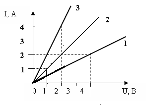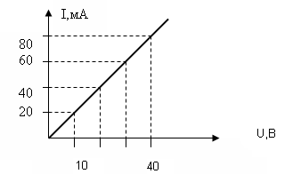 678. Зависимость силы тока, протекающего через сопротивление R, от напряжения показана на рисунке. Чему равна мощность, выделяемая на этом сопротивлении, при U=40 В?