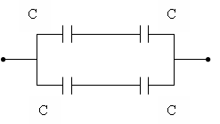 591. Чему равна емкость батареи из одинаковых конденсаторов, соединенных как показано на схеме?