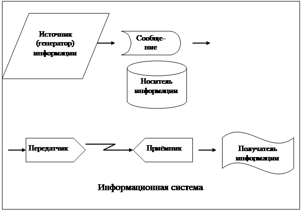 Информационная система: среда, объединяющая инструменты для генерации и перевода информации в различные состояния с целью обмена информацией между конкретными источниками и получателями информации.