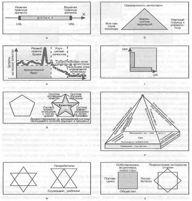 Очевидно, что многие составляющие TQM весьма непросты и требуют, как сформулировал Э. Деминг, постижения системы глубоких (глубинных) знаний. Сам Э. Деминг, как и ряд других гуру и современных специалистов, сделал очень много для образного прочтения TQM, и нам следует пытаться идти тем же путем, хотя это и невероятно сложно, однако другого пути нет, ибо TQM — это не элитарная теория, это теория для всех.