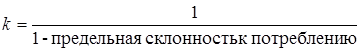 Первоначально (1931 г.) предложен Р.Ф. Каном в качестве мультипликатора использования средств. Идея основывалась на сделанном им наблюдении, что определенный объем первичного дополнительного использования средств приводит к появлению вторичных форм их использования в результате последовательного роста распределения доходов и связанных с ним расходов. Эта идея была систематизирована Кейнсом и представлена в виде коэффициента-мультипликатора инвестирования. Его смысл: добавочный расход на капиталовложение создает последовательные волны доходов, величина которых зависит от склонности их получателей к потреблению; таким образом, коэффициент-мультипликатор может быть измерен по следующей формуле: