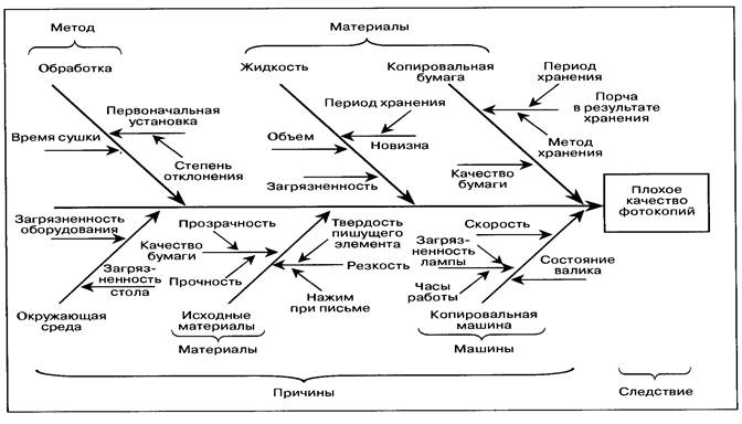 Компания, оказывающая копировальные услуги, стала получать много жалоб на плохое качество фотокопий. Управляющие решили проанализировать эту проблему с помощью диаграммы «скелет рыбы».