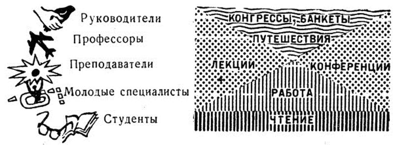 Номограмма распределения времени на разных стадиях научной карьеры.