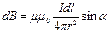 По закону Био-Cавара-Лапласа можно определить элементарную индукцию dB, создаваемую элементом проводника dl, по которому течет ток I в точке, находящейся на расстоянии r от элемента dl.