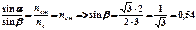падающий и преломленный лучи, а также перпендикуляр к гра-нице раздела двух сред, восстановленный в точке падения луча, лежат в одной плоскости. Отношение синуса угла падения α к синусу угла преломления γ есть величина, постоянная для двух данных сред