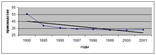 Следующие характеризуют производство с/х продукции в РФ за 1990-2001гг., млн. т (таблица 5)