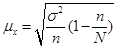 - средняя ошибка среднеарифметической для выборочной совокупности, которая, например, для т.н. собственно случайного безповторного отбора, рассчитывается: