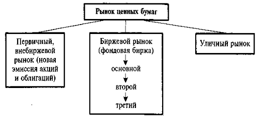В настоящее время в ведущих западных странах с развитой рыночной экономикой существуют, действуют и развиваются три рынка ценных бумаг: первичный (внебиржевой), вторичный (фондовая биржа) и уличный (рис. 1.2). Все они представляют собой весьма необходимый и важный элемент рыночного хозяйствования, особенно его кредитно-финансовой надстройки» [29, с.90]