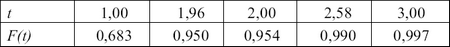 В математической статистике употребляют коэффициент доверия t, значения функции F(t) табулированы при разных его значениях, при этом получают соответствующие уровни доверительной вероятности (табл. 6.1).