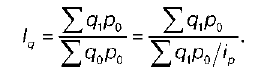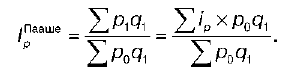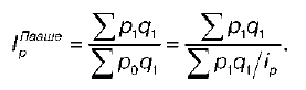Однако эта формула неудобна на практике. Поэтому при расчетах используется средняя гармоническая форма общего индекса качественных показателей (цены) по схеме Пааше: