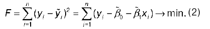 В соответствии с методом наименьших квадратов в качестве метода оценки неизвестных параметров регрессионной модели будет выступать сумма квадратов отклонений наблюдаемых значений результативного признака у от теоретических значений у (рассчитанных с помощью регрессионной модели):
