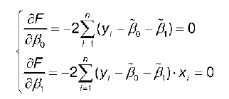 Для нахождения оптимальных значений неизвестных параметров β0 и β1 необходимо минимизировать функционал F по данным параметрам, т. е. необходимо рассчитать такие значения параметров β0 и β1, которые бы доставляли минимум функции: