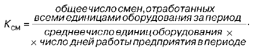 Данный коэффициент показывает, сколько смен в среднем работала каждая единица оборудования в течение суток;