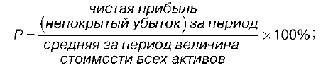 1) рентабельность активов общая, характеризующая количество привлеченных предприятием денежным единиц для получения одного рубля прибыли:
