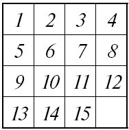 Сейчас мы набросаем очерк этой теории, по крайней мере, в главных ее чертах. Задача игры состоит обыкновенно в том, чтобы посредством последовательных передвижений, допускаемых наличием одного свободного поля, перевести любое начальное расположение 15 шашек в нормальное, т. е. в такое, при котором шашки идут в порядке своих чисел: в верхнем левом углу 1, направо – 2, затем 3, потом в верхнем правом углу 4; в следующем ряду слева направо: 5, 6, 7, 8, и т. д. Такое нормальное конечное расположение мы даем здесь на чертеже (схема I).