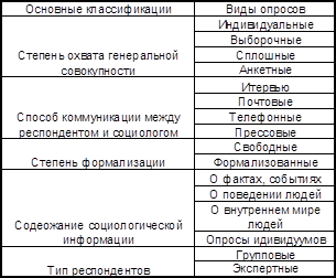 Классификация видов социологического опроса: