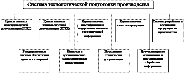 Единая система технологической подготовки производства (ЕСТПП) – (см. рис. 1.) установленная государственными стандартами система организации и управления технологической подготовкой производства, предусматривающая широкое применение прогрессивных технологических процессов, стандартной технологической оснастки и оборудования, средств механизации и автоматизации производственных процессов, инженерно-технических и управленческих работ (ГОСТ 14.001–73*).