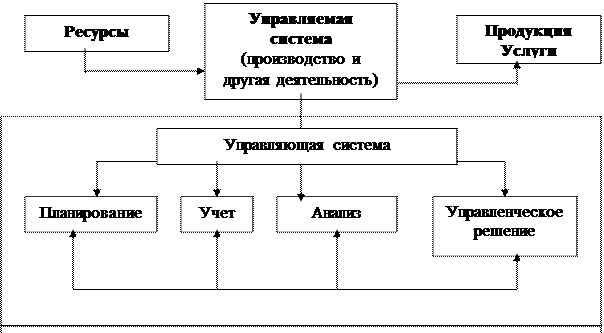 Организация представляет собой взаимосвязанную систему между производством и управлением. Система управления состоит из 4-х функций:
