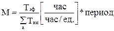 В условиях многономенклатурного производства производственная мощность определяется, как частное от деления фонда времени работы оборудования на трудоемкость комплекта изделий (деталей), изготавливаемых на данном оборудовании: