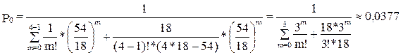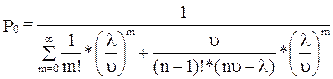 Теперь вычислим вероятность того, что в момент прибытия очередного автомобиля под погрузку все комплексные бригады заняты (формула 8.20):