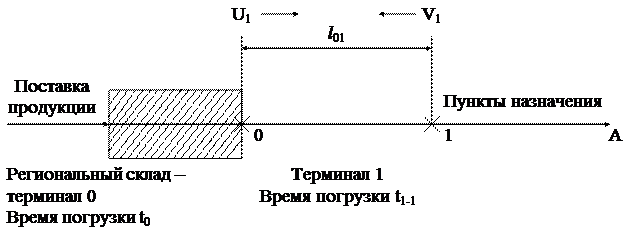 Существуют различные стратегии обеспечения материальными ресурсами различных предприятий. Одной из таких стратегий является модель, которая состоит из регионального склада и нескольких терминалов. Рассмотрим эти модели. Иллюстрация модели с одним терминалом приведена на рис. 8.3, а модель с двумя терминалами показана на рис. 8.4.