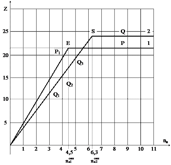 Графическая зависимость производительности системы перевозок от числа транспортных средств в случае модели с одним терминалом показана на рис. 8.5.