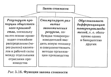 При эквивалентном обмене происходит возмещение затрат прошлого и живого труда, создаются условия для расширения производства, появляются стимулы к снижению индивидуальных затрат, к экономии труда. Если нарушается эквивалентность обмена, товаропроизводители лишаются возможности возместить свои затраты, снижается их заинтересованность в совершенствовании и развитии производства. В условиях частной собственности на средства производства закон стоимости выступает в качестве стихийного регулятора производства. Стихийные колебания цен вокруг стоимости заставляют товаропроизводителей расширять или сокращать производство тех или иных товаров, проникать в те отрасли, где под влиянием спроса цены выше стоимости. Это ведет к стихийному перераспределению труда и средств производства между различными отраслями хозяйства.