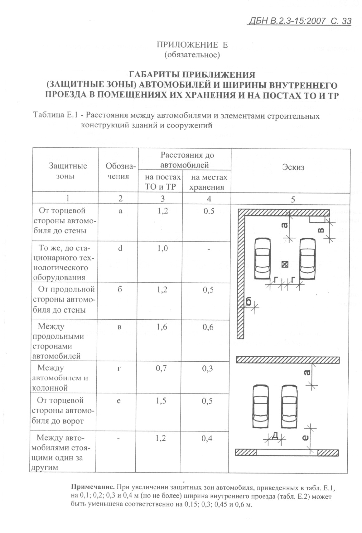 Расстояния между автомобилями и элементами строительных конструкций зданий и сооружений