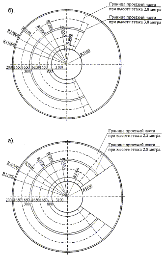 Примечание. При увеличении защитных зон автомобиля, приведенных в табл. 3, на 0,1; 0,2; 0,3 и 0,4 м (но не более) ширина внутреннего проезда (табл. 4) может быть уменьшена соответственно на 0,15; 0,3; 0,45 и 0,6 м.