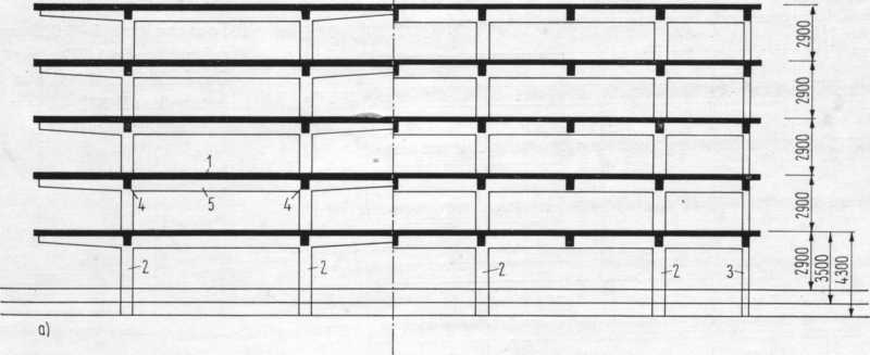 В зависимости от конструктивной системы, каркасы могут быть балочные или безбалочные, с монолитными или сборными железобетонными перекрытиями.