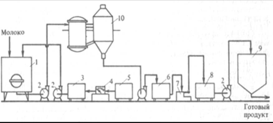 Рисунок 9.2 – Схема технологической линии производства сухого молочного белка