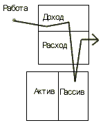 Рисунок выше отражает состояние дохода, т.е. как обстоит дело с прибылью и убылью. Речь идет о доходах и расходах, приходе и оттоке денег. Внизу дана диаграмма баланса, предполагающая сопоставление актива по отношению к пассиву. Многие финансовые новички не знают связи между состоянием дохода и балансом. А связь эту нужно знать. Первоначальная причина финансовой борьбы обыкновенное незнание разницы между активом и пассивом. Причина путаницы обнаруживается в определении этих двух слов. Хотите урок путаницы просто посмотрите в словаре слова «актив» и «пассив». Опытный финансист разберется, но обычный человек будет смотреть на эти слова, как на китайские иероглифы. То есть можно читать определение этих слов, не совсем его понимая.
