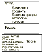 «Если хочешь быть богатым, ты должен читать и понимать цифры». Я слышал это тысячи раз от моего богатого отца. И еще я слышал: «Богатые приобретают актив, бедные и средний класс - пассив». Ниже пойдет рассказ о разнице между пассивом и активом. Многие бухгалтера-эксперты и финансовые профи не согласятся с определениями, что я дам, с рисунками. Но эти простые рисунки были началом финансового будущего для двух мальчишек.