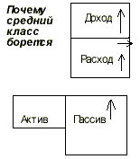 Средний класс находится в вечном состоянии финансовой борьбы. Первоначальный доход среднего класса - зарплата, а когда зарплата растет, то и налоги тоже. Доходная часть сокращается, т.к. расходы имеют тенденцию расти с ростом зарплаты. Дело идет к крысиным гонкам. Средний класс видит в своем доме первостепенный актив, не инвестируя в активы, продуцирующие доход.