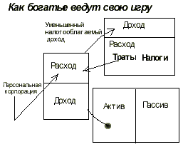 Знание силы легальной структуры корпорации даёт богатым невероятное преимущество над бедным и средним классом. Имея двух обучавших меня отцов, одного - социалиста, другого - капиталиста, я быстро начал осознавать, что философия капиталиста была более значимой для меня в финансовом плане. Мне казалось, что социалисты сами себя, в конечном счёте, ставили в невыгодное положение из-за бреши в своем финансовом образовании. Толпа под лозунгом «Заберём у богатых» поднимала волну, но богатые всегда находили способ оказаться над толпой, быть умнее. Вот так налоги, в конце концов, обрушились всей своей массой на средний класс. Богатые обскакали интеллектуалов исключительно потому, что поняли силу, власть денег, предмета, не изучаемого в школах.