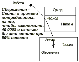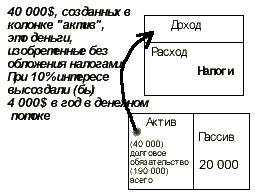 Сегодня в 1997 г., когда я пишу эту книгу, рыночные условия совершенно иные, нежели 5 лет тому назад. Рынок недвижимости Феникса - предмет зависти в США. Те дома, что мы продавали за 60000 $, теперь оцениваются в 110 000 $. Рынок изменился. Сегодня время искать другие возможности пополнения графы «актив». Рыночные условия могут быть разные. Но приведённый пример иллюстрирует, как простой финансовый процесс может создать сотни тысяч долларов, задействовав малые суммы, с малым риском. Это пример денег, являющихся лишь соглашением. Кто угодно со средним образованием может сделать это. Хотя большинство людей делать чего-то подобного не станут, а лучше прислушаются к стандартному совету: «Работай усерднее и экономь деньги».
