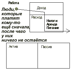 Я не говорю - быть безответственным. Я не имею большого долга по кредитным карточкам, потому что хочу платить себе в первую очередь. Причина, по которой я минимизирую свою прибыль в том, что я не хочу делиться свой прибылью с правительством. Вот почему, для тех из вас кто посмотрел видеокассету «Секреты богатых», моя прибыль вытекает из графы «актив» через корпорацию «Невада». Если я работаю на деньги, правительство их забирает.