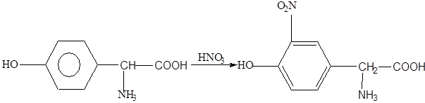 Задача 1. Аминокислотный состав пептида отличается высоким содержанием диаминомонокарбоновых кислот – лизина и аргинина, в то же время, в структуре пептида отсутствуют ароматические и гетероциклические аминокислоты - фенилаланин, тирозин, гистидин и триптофан, дающие положительную ксантопротеиновую реакцию. В частности, тирозин с концентрированной азотной кислотой реагирует по следующей схеме: