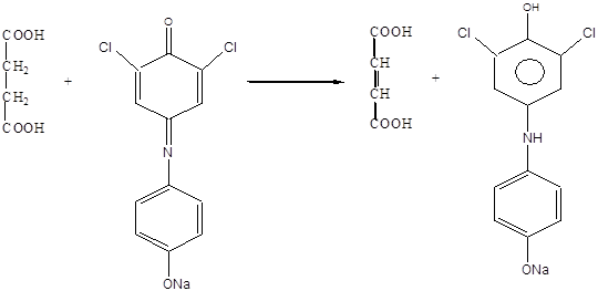 Сукцинатдегидрогеназа (СДГ) окисляет янтарную кислоту в фумаровую. Коферментом СДГ является флавинадениндинуклеотид. В условиях опыта в качестве акцептора водорода при окислении сукцината используется натриевая соль 2,6-дихлорфенолиндофенола.