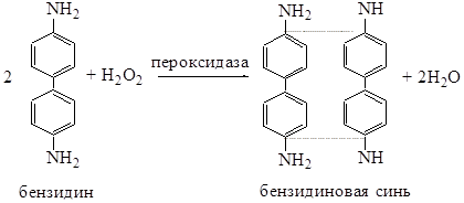 Принцип метода. Метод основан на непрерывном измерении светопоглощения бензидиновой сини, образующейся при окислении бензидина под действием пероксидазы.