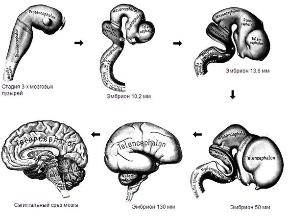 Рис. 1. Онтогенетические этапы развития головного мозга