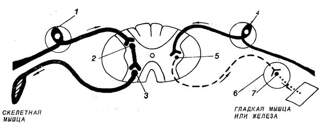 Вегетативная нервная система, так же как и соматическая, функционирует по принципу рефлекторной регуляции. Морфологическим субстратом вегетативных рефлексов является рефлекторная дуга, строение которой отличается существенно от строения рефлекторной дуги соматического рефлекса.