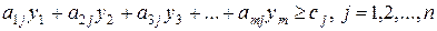 Понятно, что покупатели ресурсов стремятся совершить сделку как можно дешевле, итак, необходимо определить минимальные цены единиц каждого вида ресурсов, при которых их продажа является более целесообразной, чем изготовление продукции. Общую стоимость ресурсов можно выразить формулой: