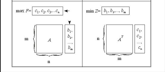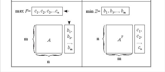 Процесс построения двойственной задачи удобно изобразить схематично: