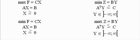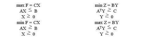 Все возможные формы прямых задач линейного программирования и соответствующие им варианты моделей двойственных задач в матричной форме приведено ниже.