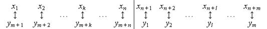 Получили такое соответствие между переменными сопряженных задач: